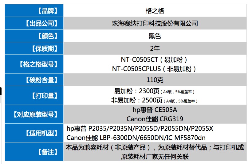 ¥169.00格之格CE505A硒鼓 适用HP惠普原装05A墨盒P2035粉盒P2035N碳粉P2055D P2055DN P2055X激光打印机NT-C0505CT